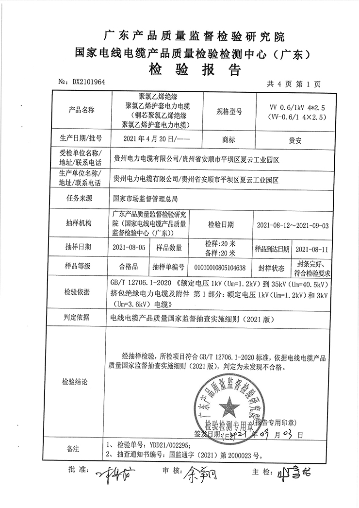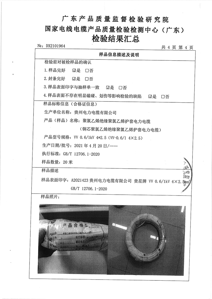 聚氯乙烯絕緣聚氯乙烯護(hù)套電力電纜(銅芯聚氯乙烯絕緣聚氯乙烯護(hù)套電力電纜)國抽檢驗(yàn)報(bào)告