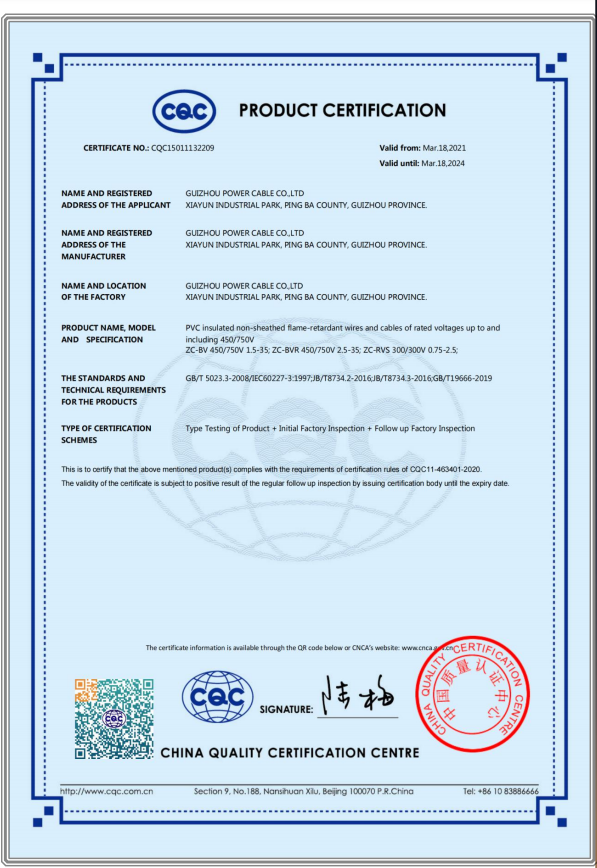 CQC產(chǎn)品認證證書